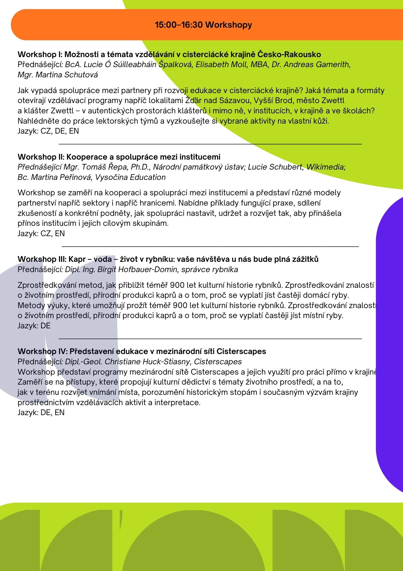 Konference Cisterciácké krajiny: vzdělávání, sdílení, interpretace nabídne inspiraci i praktickou zkušenost s tím, jak přibližovat kulturní dědictví lidem, s důrazem na cisterciáckou krajinu a její příběhy.
