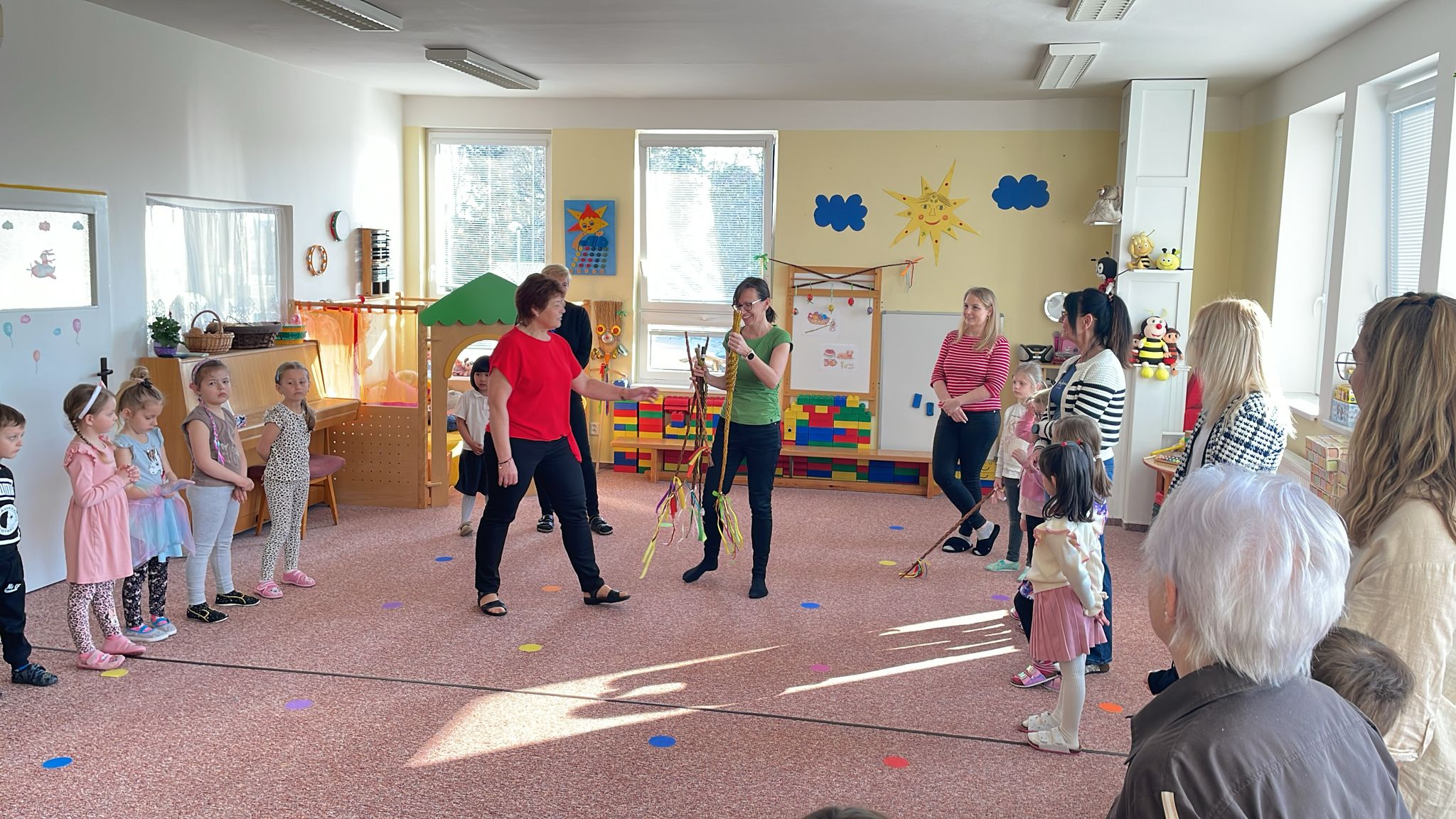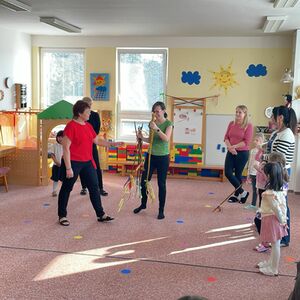 Der Vormittag begann mit einem gemeinsamen Programm, bei dem die Kinder in beiden Sprachen sangen, sich bewegten und kreativ tätig wurden. Im Mittelpunkt stand dabei das Kennenlernen tschechischer Ostertraditionen. Ein besonderer Fokus lag auf dem Brauch der sogenannten „pomlázka“ (Osterrute), der den Kindern altersgerecht vermittelt wurde. Dabei wurde erklärt, dass am Ostermontag traditionell von Haus zu Haus gegangen wird und symbolisch Gesundheit und Fruchtbarkeit gewünscht werden.